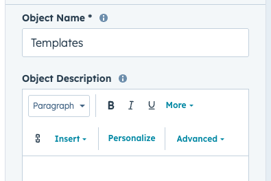 Name: Enter the label for the sidebar and page title (this can differ from your HubSpot object name).