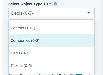 Custom Objects: Paste the custom object’s ID (copy from WoodsPortal Admin > HubSpot Objects > Custom Objects).