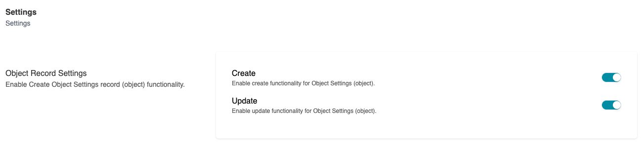 Create Files/Folders toggle: Allow users to upload files or create folders associated with the record.