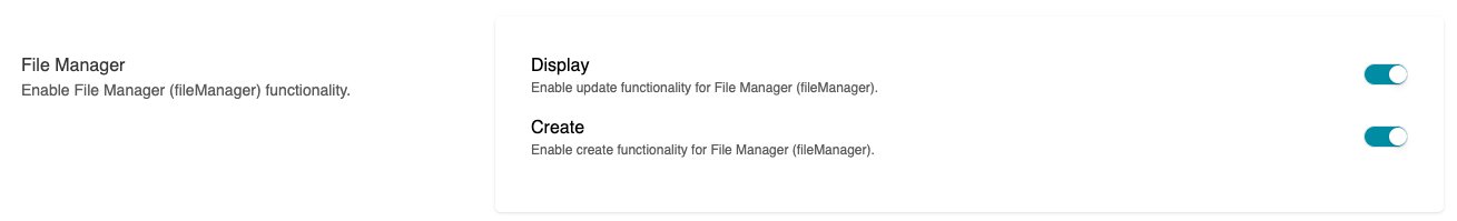 Display File Manager toggle: Show or hide the File Manager tab on the record’s detail page.