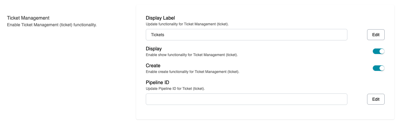 Display Tickets toggle: Show or hide the Tickets tab on the detail page.