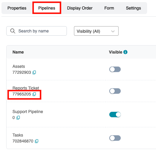 In WoodsPortal Admin > HubSpot Objects, select the object and open Configure → Pipelines to copy the pipeline ID.