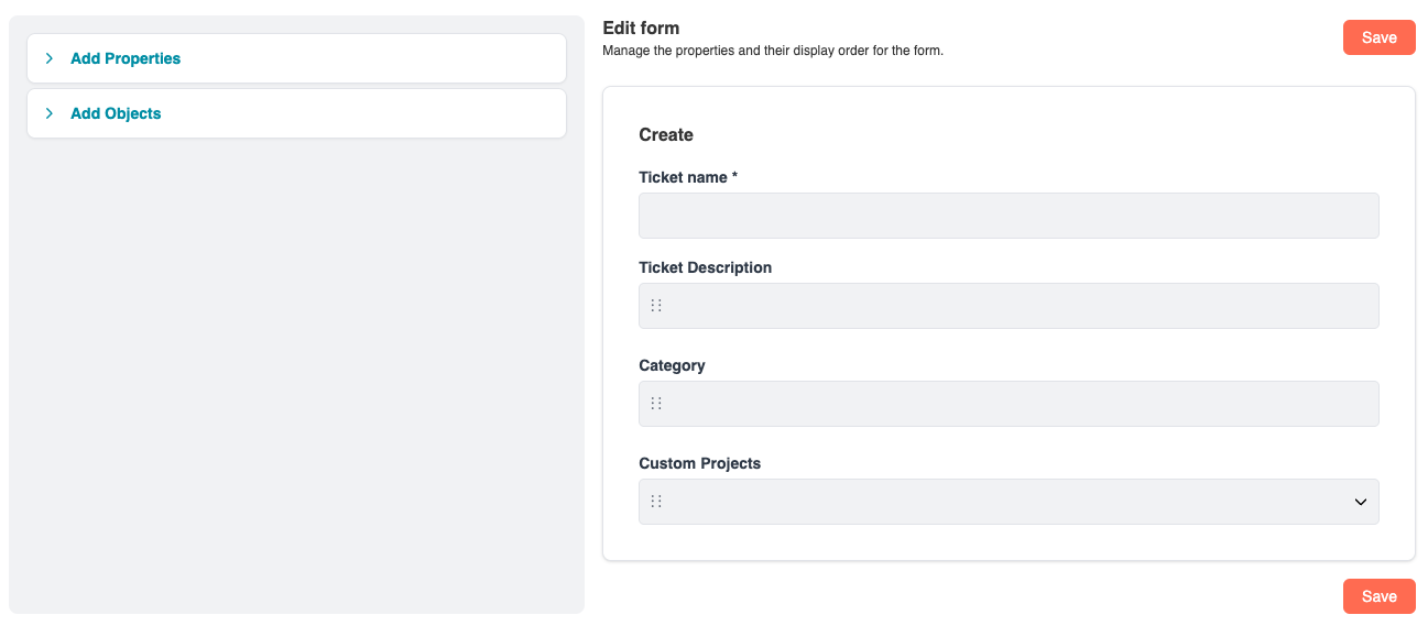 In your live portal, go to the object’s tab (e.g., Tickets) and click Create [Object].