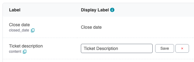 In the form layout, click a field’s label ▶ Properties ▶ click the current text (e.g., “Ticket Description”).