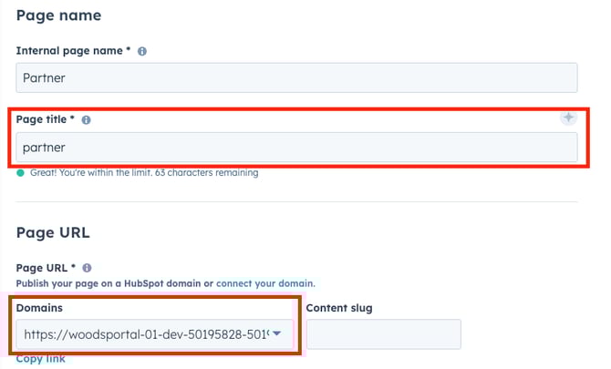Under General, enter a Page title (visible in browser tabs) and confirm the Page URL matches your portal domain/subdomain.