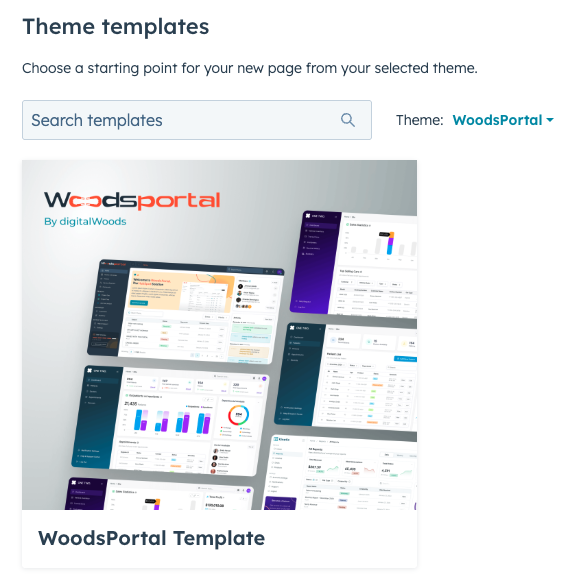 Once the WoodsPortal theme is installed in your HubSpot Design Manager, you can create a dedicated portal page that renders WoodsPortal’s frontend and connects to its backend API. Follow these steps to set up, configure, and publish your customer portal page.