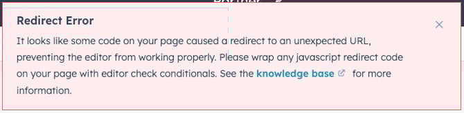 HubSpot’s editor expects standard page URLs (e.g., /login). When it encounters a # in the URL (e.g., /#/login), it interprets this as a potential redirect or reload action. This can trigger an error or warning about redirection while editing or previewing the page in HubSpot.