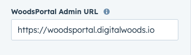 Locate the WoodsPortal Admin URL field and ensure it displays the admin backend URL