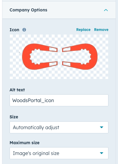 Logo Icon: Upload your portal icon, set Alt text, and choose Size: