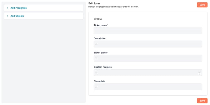 Click Create Ticket (or Create [Object]) to confirm your form reflects the updated fields, order, and labels.