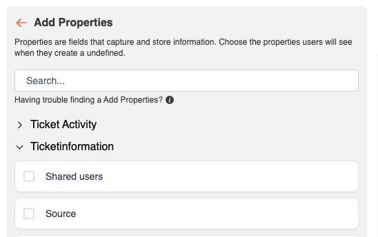 In the Properties sidebar, find and click any field you want to include (e.g., Priority, Description, Custom Project).