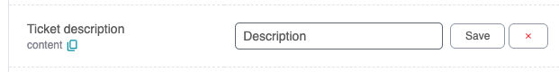 In the form layout, click a field ▶ Properties ▶ click the current label (e.g., Ticket Description).