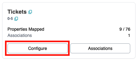 Select the Standard Objects or Custom Objects tab, then click Configure next to your target object (e.g., Tickets).